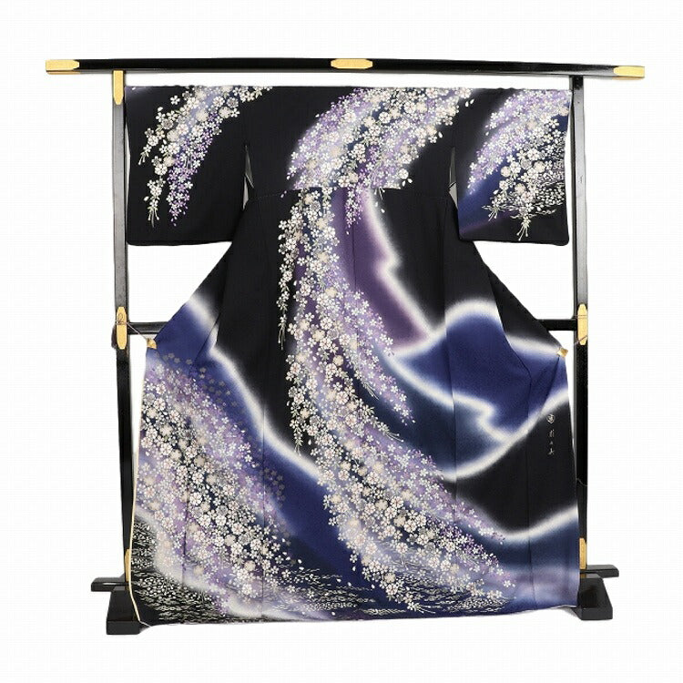 桜 訪問着 レンタル モダン アンティーク 正絹 お宮参り 着物 レンタル 母 紺黒桜づくし 【レンタル】 卒業式 母 着物 レンタル 入学式 着物 レンタル 七五三 母 母親 着物 レンタル 20代 30代 40代 50代 60代