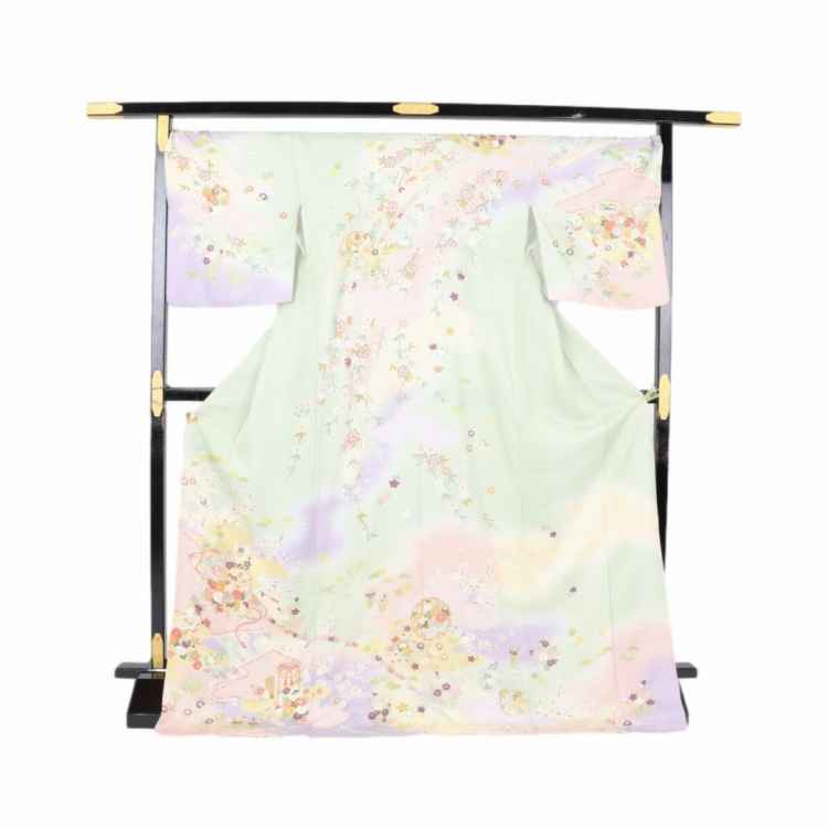 訪問着 レンタル モダン アンティーク 正絹 お宮参り 着物 レンタル 母 萌黄貝桶四季花  【レンタル】 卒業式 母 着物 レンタル 入学式 着物 レンタル 七五三 母 母親 着物 レンタル 20代 30代 40代 50代 60代