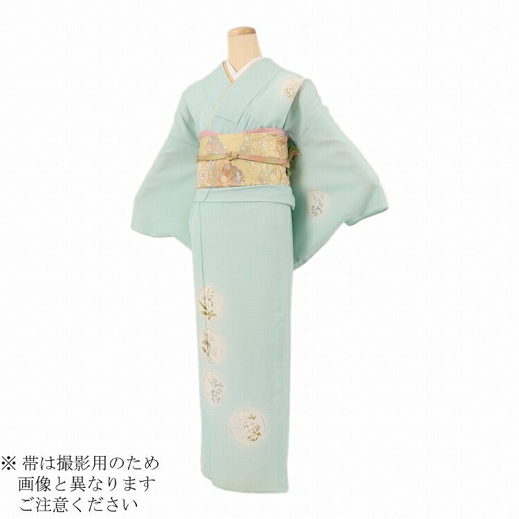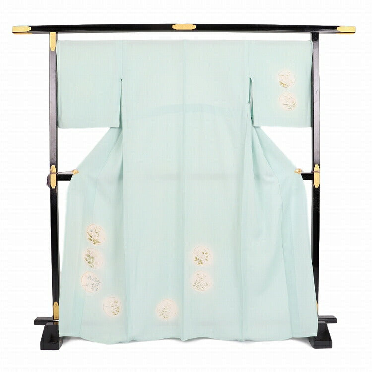 単衣 訪問着 レンタル 大きいサイズ 正絹 モダン 夏用 お宮参り 着物 レンタル 母親 Lサイズ 水色秋草丸紋 【レンタル】 七五三 母親 着物 訪問着 単衣 20代 30代 40代 50代 60代