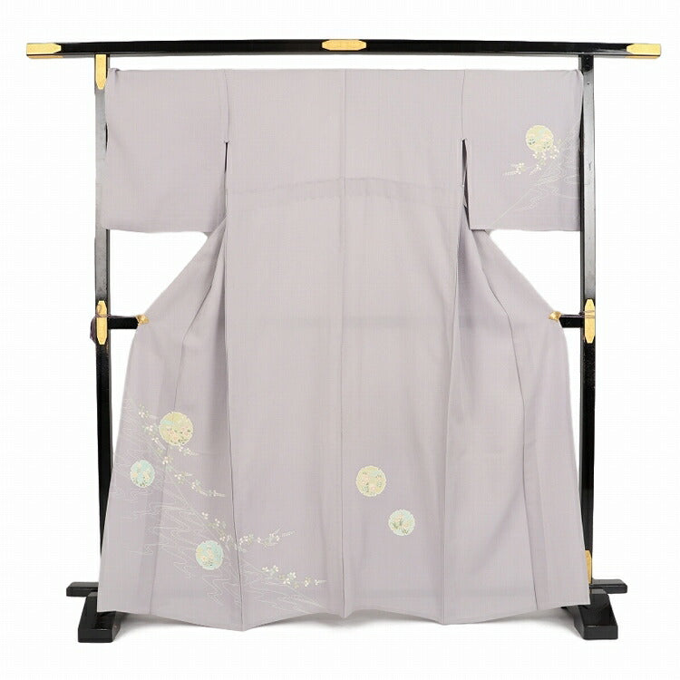 単衣 訪問着 レンタル 大きいサイズ 正絹 モダン 夏用 お宮参り 着物 レンタル 母親 Lサイズ ネズ流水萩雪輪 【レンタル】 七五三 母親 着物 訪問着 単衣 20代 30代 40代 50代 60代