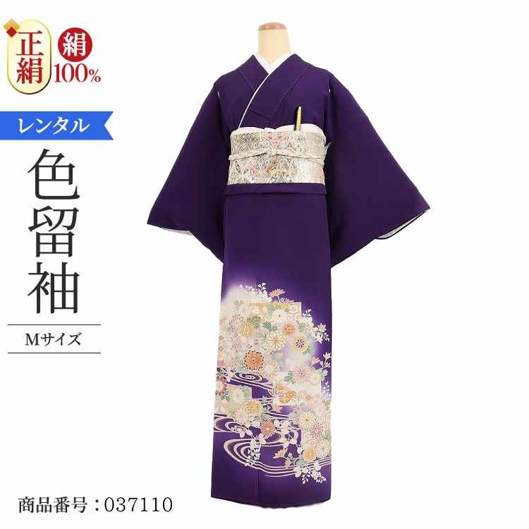 レンタル 色留袖 レンタル おしゃれ Mサイズ 紫流水菊 【レンタル】 五つ紋 20代 30代 40代 50代 正絹 結婚式 フルセット 叙勲 叙勲式 式典 金婚式 祖母 親族 姉妹 叔母 伯母 比翼仕立て 帯