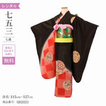 七五三 着物 レンタル 7歳 女の子 【正絹 黒赤鞠尽くし】 7歳 七五三 着物 レトロ 【レンタル】 アンティーク 七五三 着物 7歳 フルセット レンタル 七五三 7歳 帯 作り帯 袋帯 に変更可能 七五三 着物 7歳 女の子 小さめ