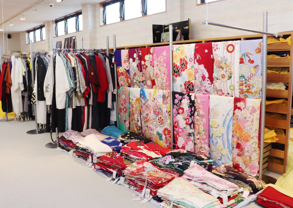 常時国内・海外のブランドドレスや着物、振袖など多数展示。
