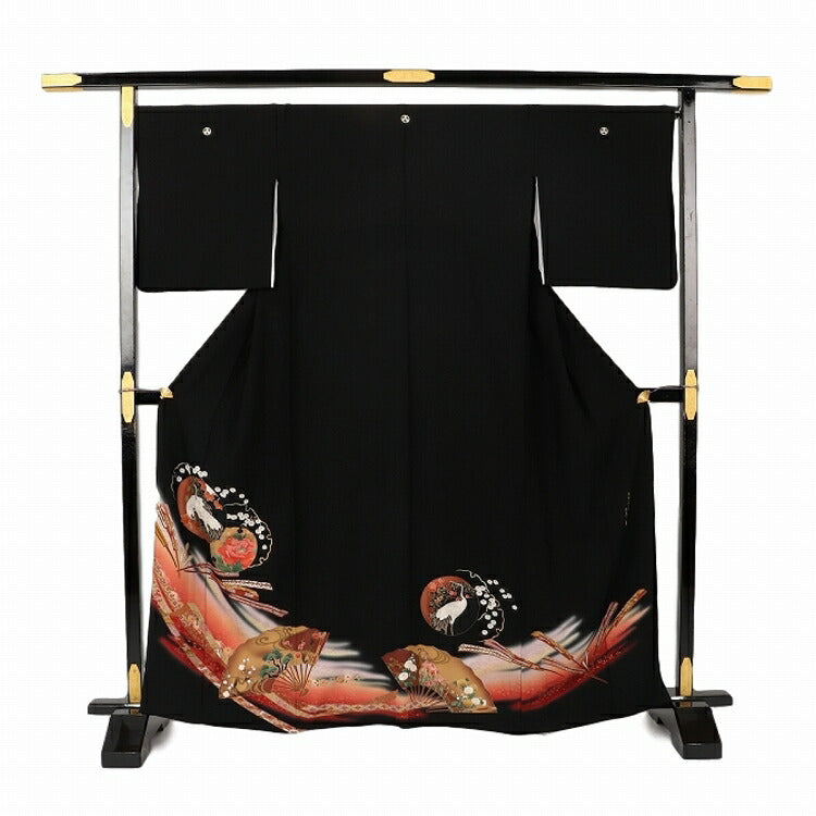 結婚式 黒留袖 レンタル 夏用 単衣 おすすめ Mサイズ 小豆のし扇雪輪 正絹 留袖 レンタル 留袖レンタル 黒留袖レンタル 【レンタル】 結婚式 単衣 母親 20代 30代 40代 50代 60代