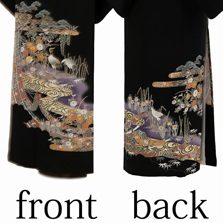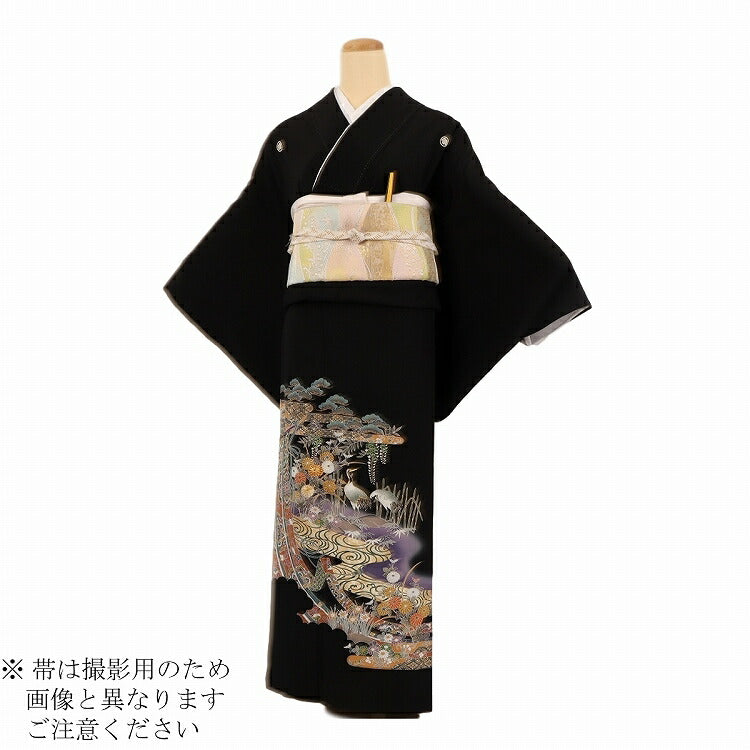結婚式 黒留袖 レンタル 夏用 単衣 おすすめ Mサイズ 薄紫流水几帳花鶴 正絹 留袖 レンタル 留袖レンタル 黒留袖レンタル 【レンタル】 結婚式 単衣 母親 20代 30代 40代 50代 60代