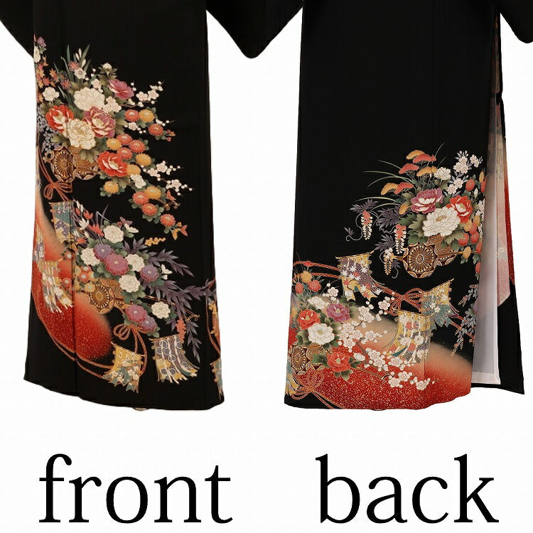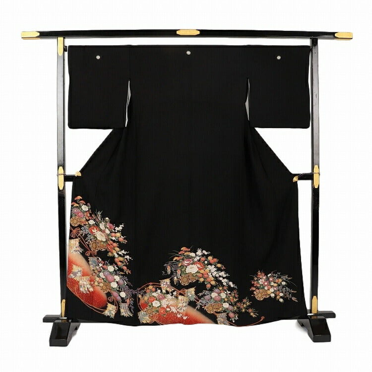 結婚式 黒留袖 レンタル 夏用 単衣 おすすめ Mサイズ 朱箔几帳花車 正絹 留袖 レンタル 留袖レンタル 黒留袖レンタル 【レンタル】 結婚式 単衣 母親 20代 30代 40代 50代 60代