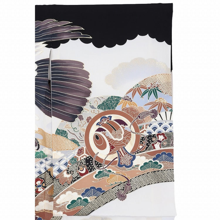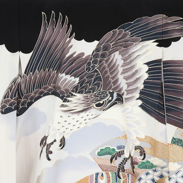 お宮参り 産着 レンタル 男の子 着物 正絹 黒水鷹に竜 【レンタル】 お宮参り 男の子レンタル 着物 掛け着 よだれかけ 帽子 お守り 付き ベビードレス レンタル オプション 男児 祝着 初着 産着