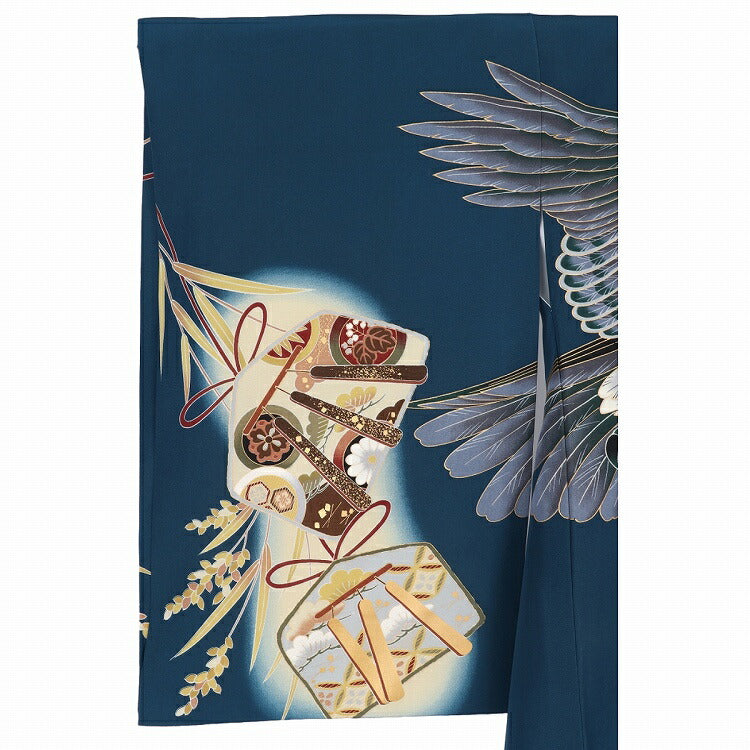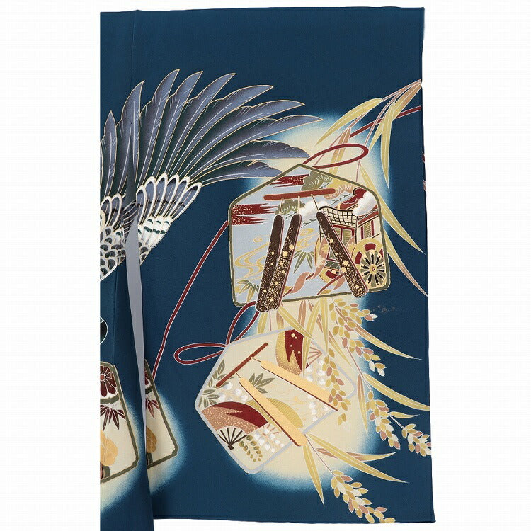 | 産着の着せ方 | お祝い着をかける時は 絵柄がよく見える様に広げ抱いた子供の体を覆う様に掛け産着の付紐の一方を肩側から他方を脇から通して 抱き手の方の背で蝶結びにします。 お守り袋など縁起の良い小物を着用した産着の紐に吊るして出かけられると良いでしょう。 |