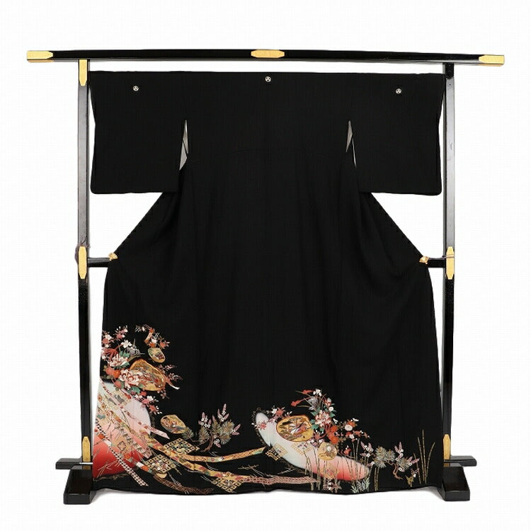 黒留袖 レンタル おすすめ Mサイズ 小豆花のし貝合 正絹 留袖 レンタル 留袖レンタル 黒留袖レンタル 【レンタル】 黒留袖 袷 母親 20代 30代 40代 50代 60代