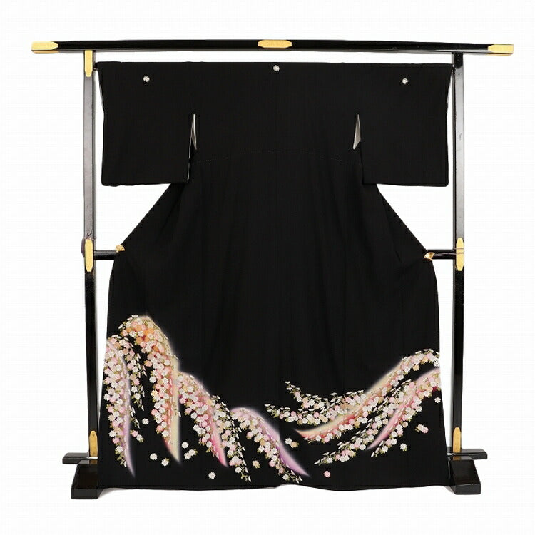 黒留袖 レンタル おすすめ Mサイズ 箔滝菊 正絹 留袖 レンタル 留袖レンタル 黒留袖レンタル 【レンタル】 黒留袖 袷 母親 20代 30代 40代 50代 60代