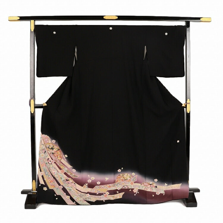 黒留袖 レンタル おすすめ Mサイズ 紫疋田絞のし 正絹 留袖 レンタル 留袖レンタル 黒留袖レンタル 【レンタル】 黒留袖 袷 母親 20代 30代 40代 50代 60代