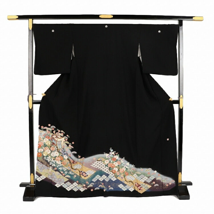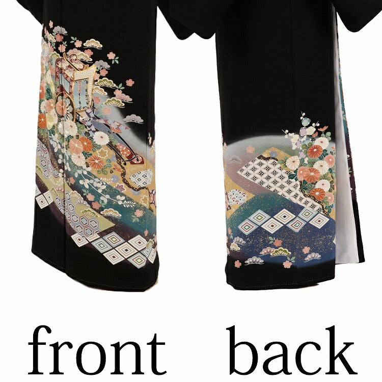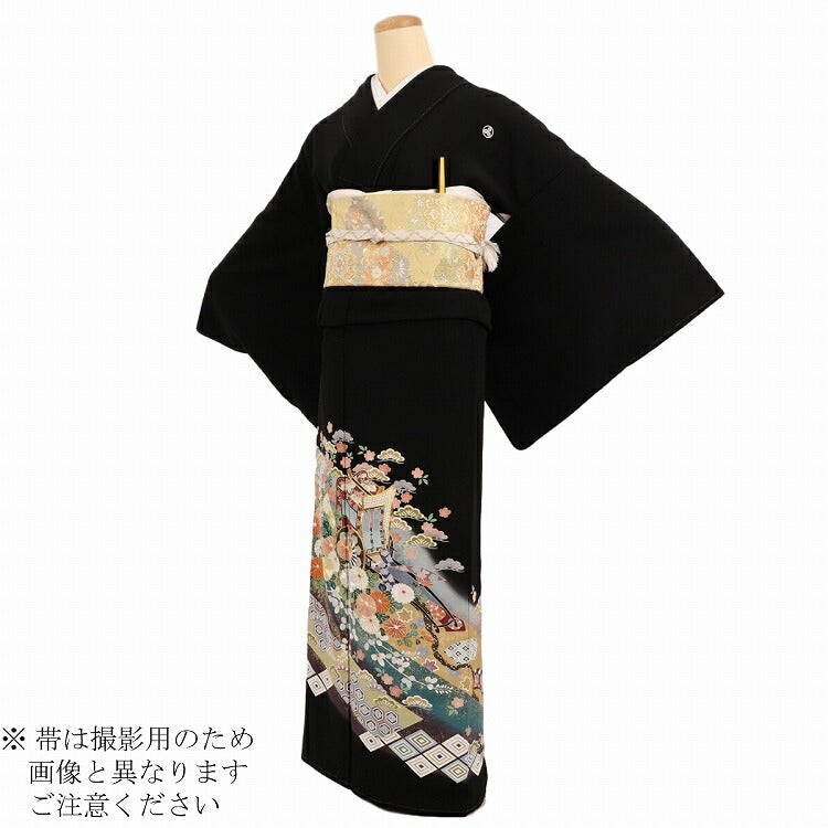 黒留袖 レンタル おすすめ Mサイズ  緑紫祝文御所車 正絹 留袖 レンタル 留袖レンタル 黒留袖レンタル 【レンタル】 黒留袖 袷 母親 20代 30代 40代 50代 60代