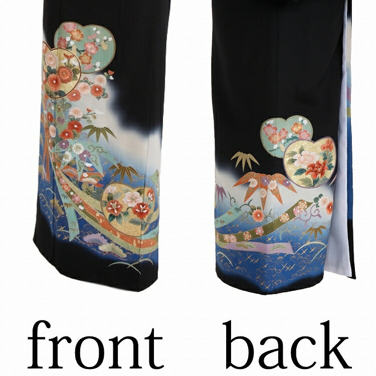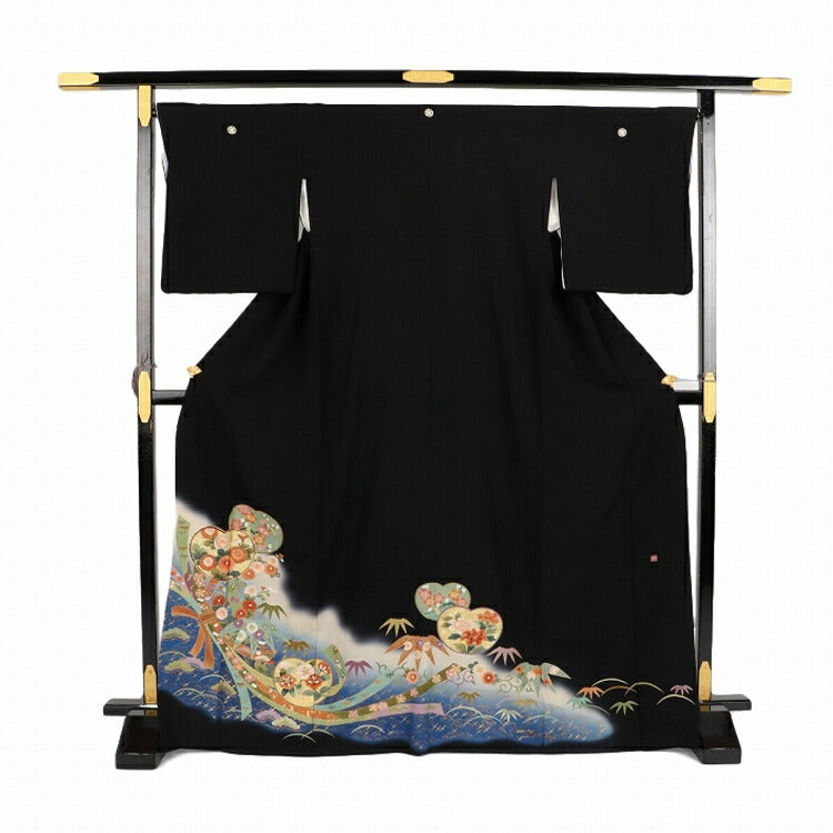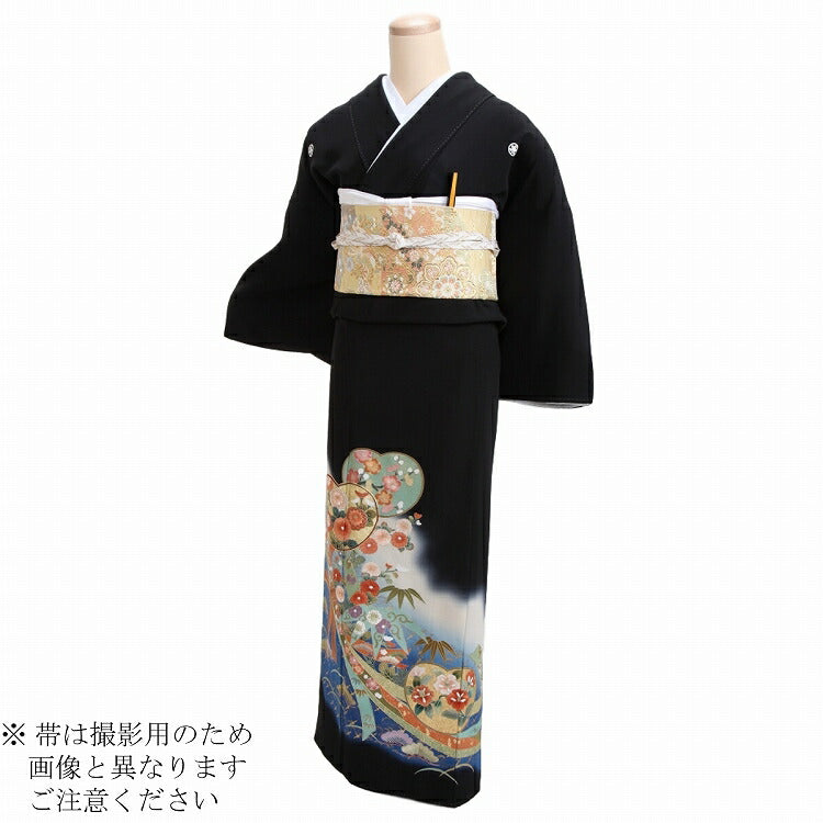 黒留袖 レンタル おすすめ Mサイズ 青束のし刺繍桃扇 正絹 留袖 レンタル 留袖レンタル 黒留袖レンタル 【レンタル】 黒留袖 袷 母親 20代 30代 40代 50代 60代