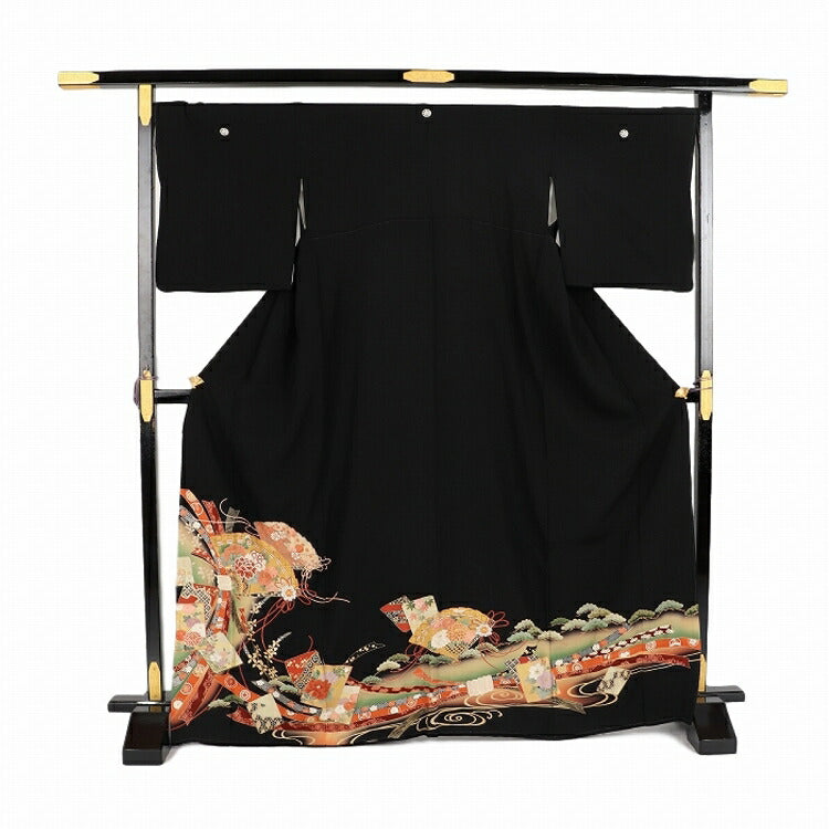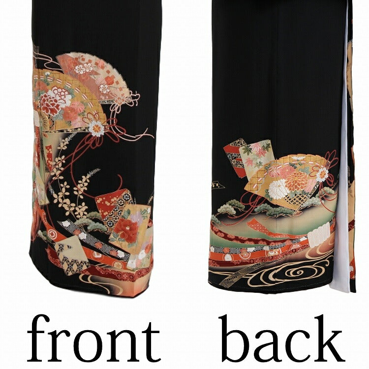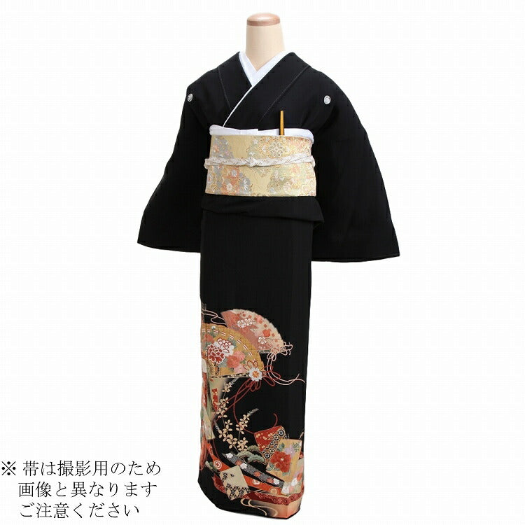 黒留袖 レンタル おすすめ Mサイズ 朱箔束のし桧扇 正絹 留袖 レンタル 留袖レンタル 黒留袖レンタル 【レンタル】 黒留袖 袷 母親 20代 30代 40代 50代 60代
