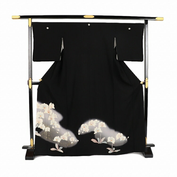 黒留袖 レンタル おすすめ Mサイズ グレーぼかし蘭 正絹 留袖 レンタル 留袖レンタル 黒留袖レンタル 【レンタル】 黒留袖 袷 母親 20代 30代 40代 50代 60代