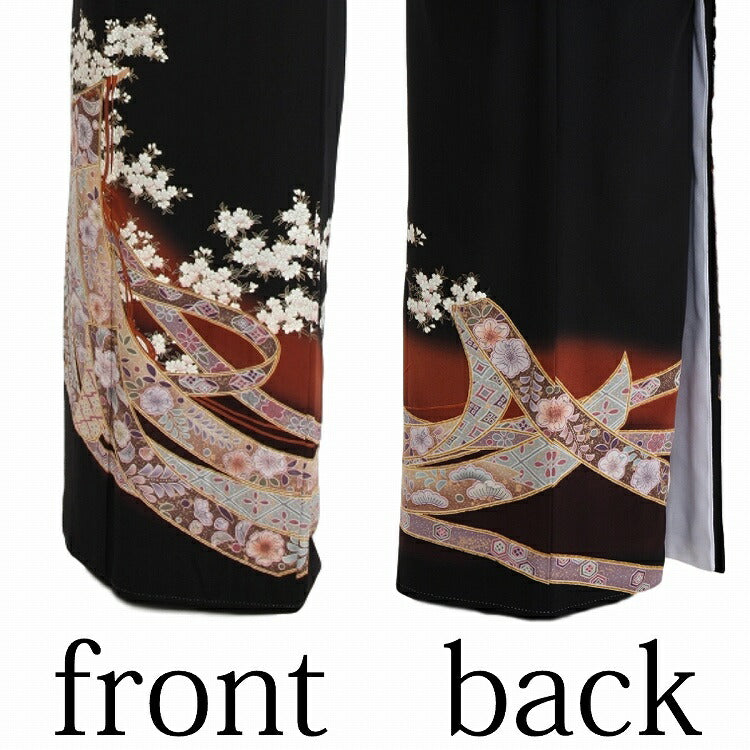 黒留袖 レンタル おすすめ Mサイズ 茶桜几帳辻が花 正絹 留袖 レンタル 留袖レンタル 黒留袖レンタル 【レンタル】 黒留袖 袷 母親 20代 30代 40代 50代 60代