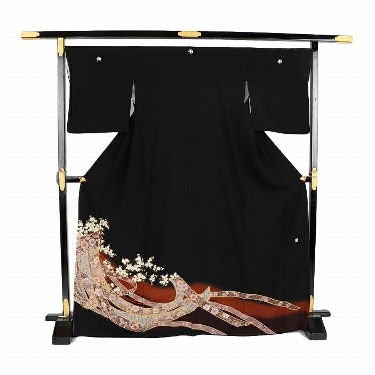 黒留袖 レンタル おすすめ  Mサイズ 茶桜几帳辻が花 正絹 留袖 レンタル 留袖レンタル 黒留袖レンタル 【レンタル】 黒留袖 袷 母親 20代 30代 40代 50代 60代