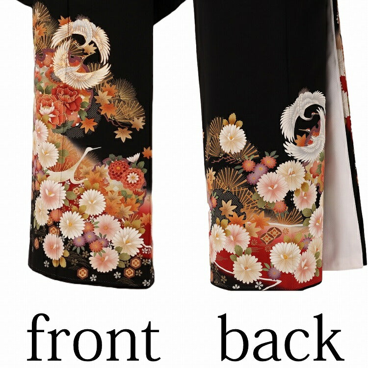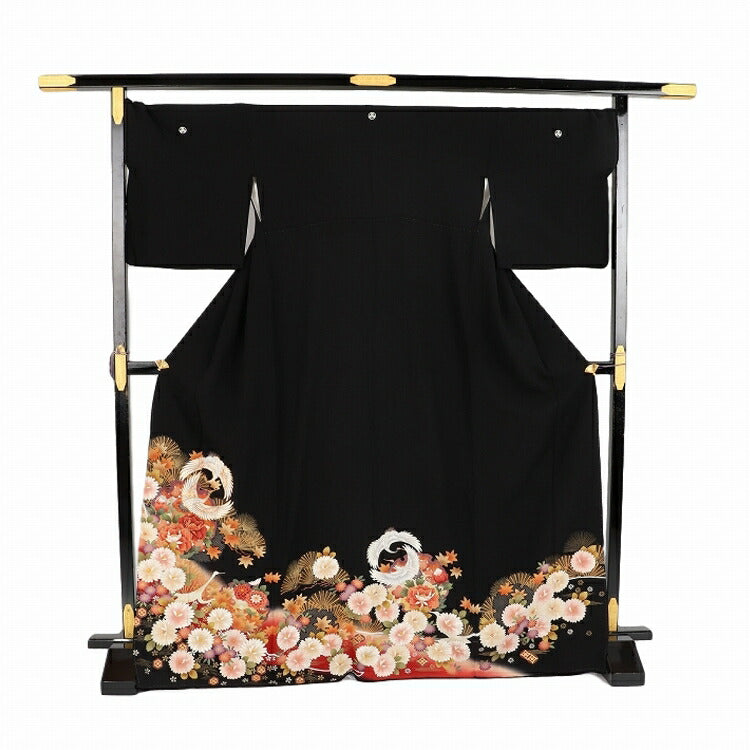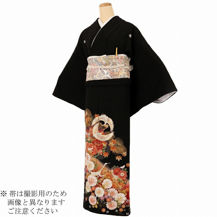 黒留袖 レンタル トールサイズ おすすめ LAサイズ 朱箔花雪輪向鶴 正絹 留袖 レンタル 留袖レンタル 黒留袖レンタル 【レンタル】 黒留袖 袷 母親 20代 30代 40代 50代 60代