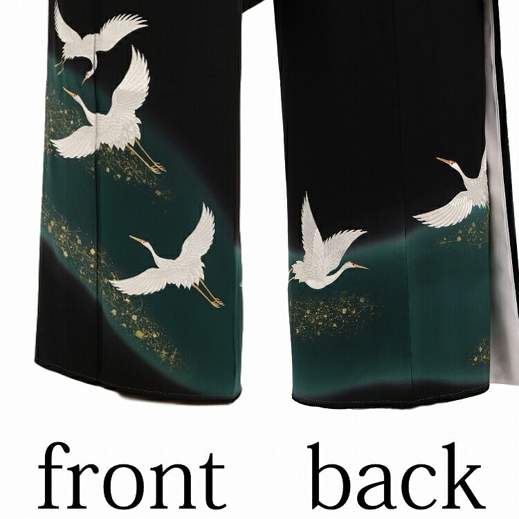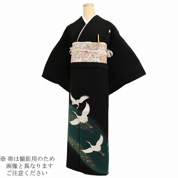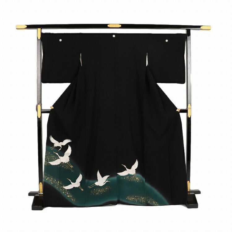 黒留袖 レンタル おすすめ Mサイズ 緑刺繍飛鶴 正絹 留袖 レンタル 留袖レンタル 黒留袖レンタル 【レンタル】 黒留袖 袷 母親 20代 30代 40代 50代 60代