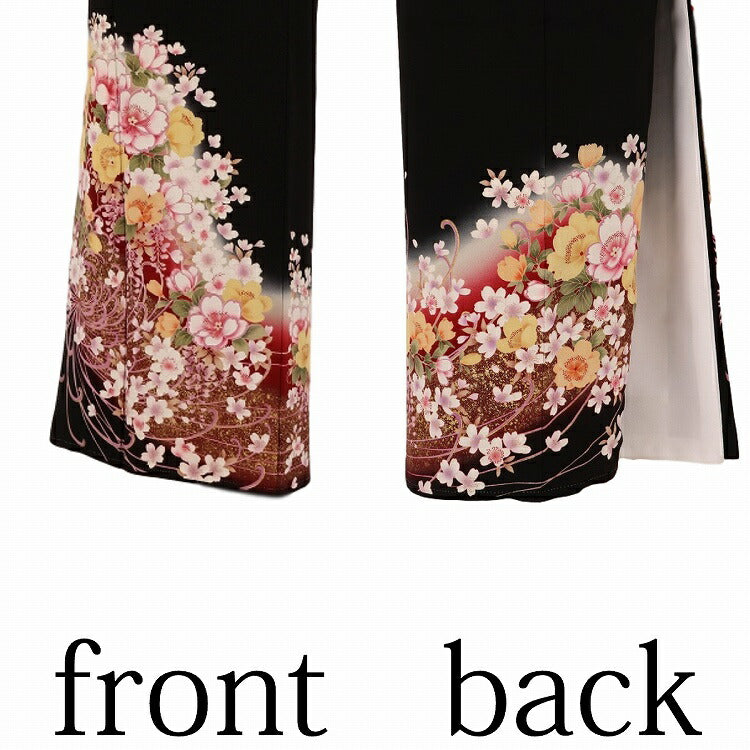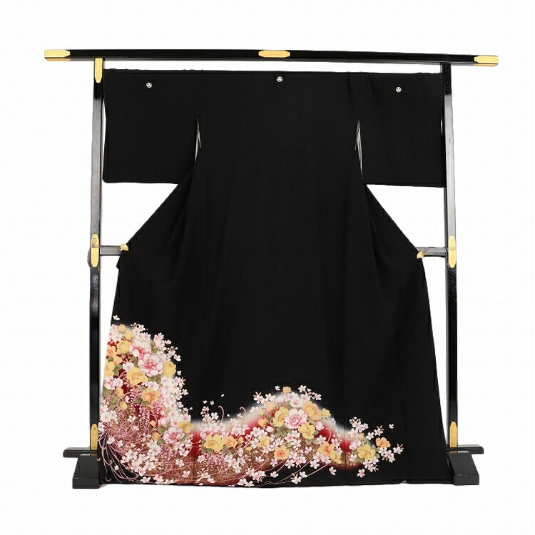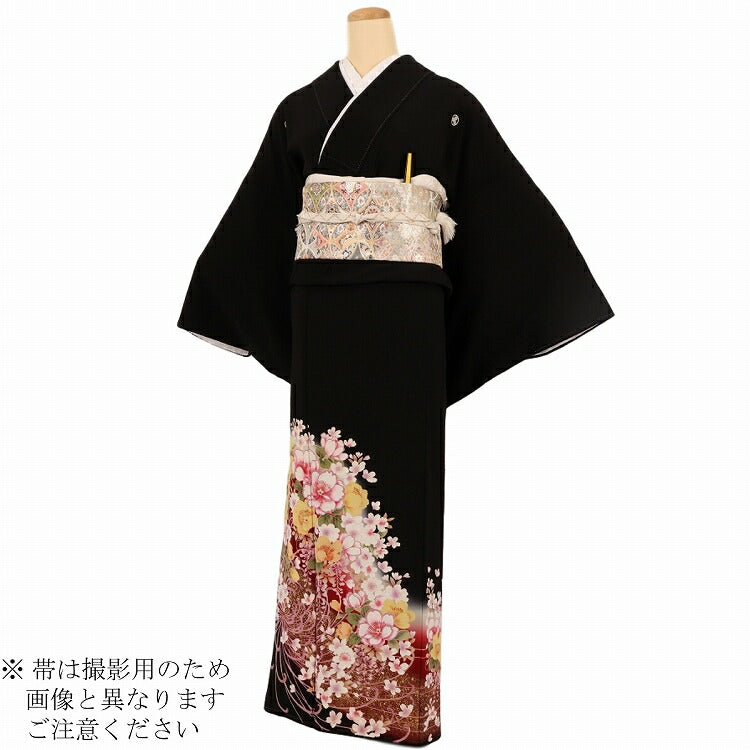 黒留袖 レンタル トールサイズ おすすめ LAサイズ ワイン花乱舞 正絹 留袖 レンタル 留袖レンタル 黒留袖レンタル 【レンタル】 黒留袖 袷 母親 20代 30代 40代 50代 60代
