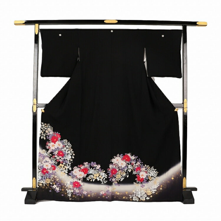 黒留袖 レンタル おすすめ Mサイズ ぼかし花園 正絹 留袖 レンタル 留袖レンタル 黒留袖レンタル 【レンタル】 黒留袖 袷 母親 20代 30代 40代 50代 60代