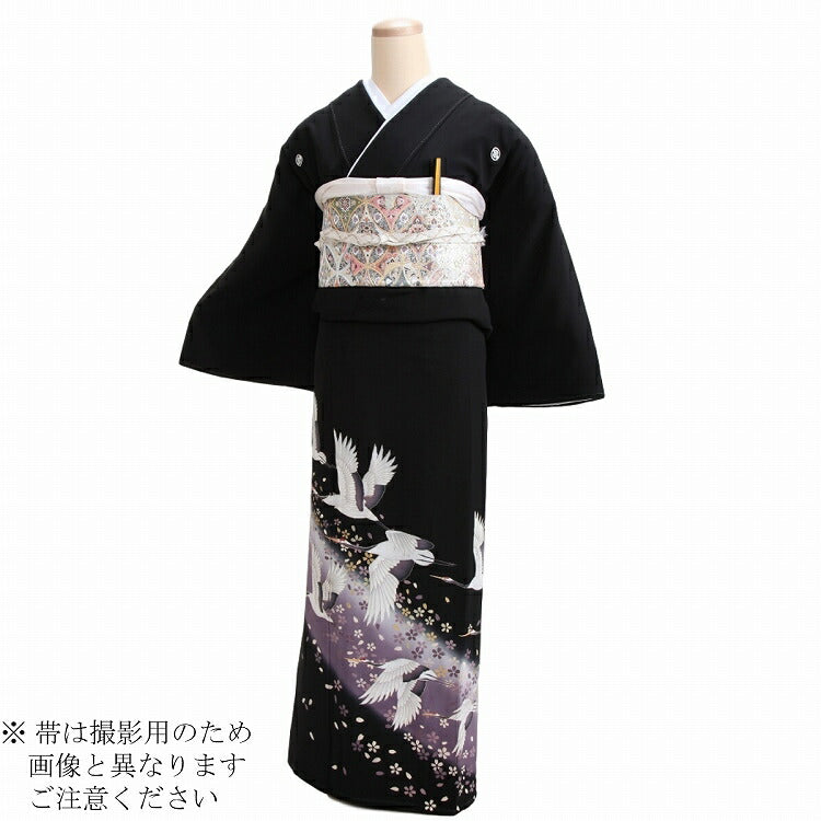 黒留袖 レンタル おすすめ Mサイズ 薄紫小花飛鶴 正絹 留袖 レンタル 留袖レンタル 黒留袖レンタル 【レンタル】 黒留袖 袷 母親 20代 30代 40代 50代 60代