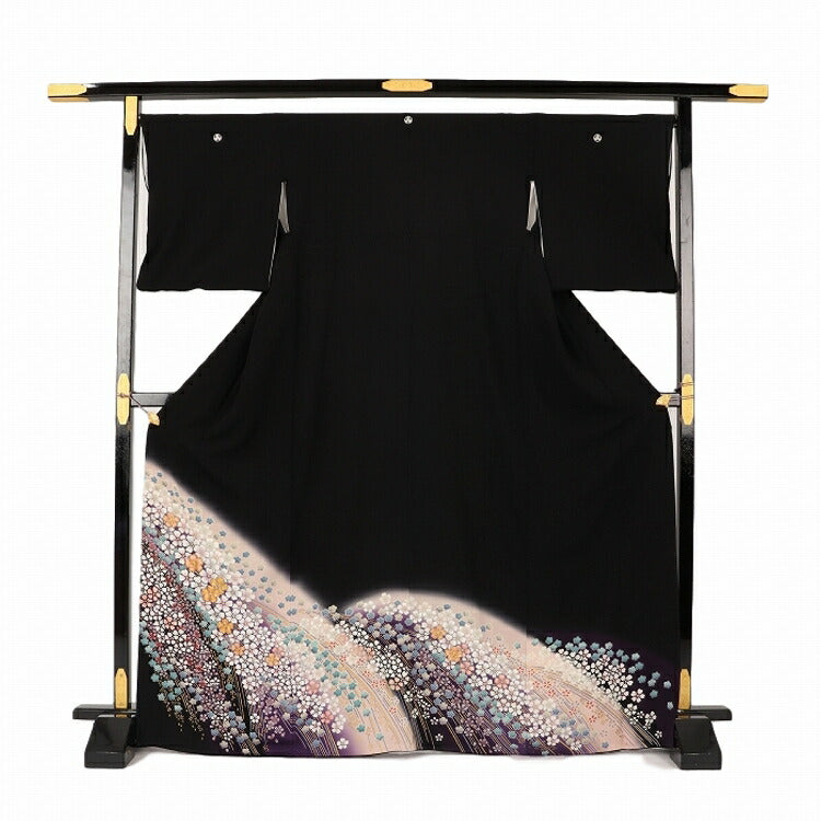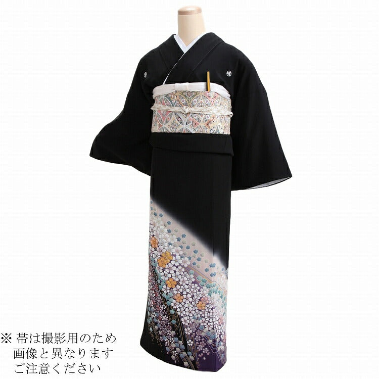 黒留袖 レンタル おすすめ Mサイズ 紫桜小花 正絹 留袖 レンタル 留袖レンタル 黒留袖レンタル 【レンタル】 黒留袖 袷 母親 20代 30代 40代 50代 60代