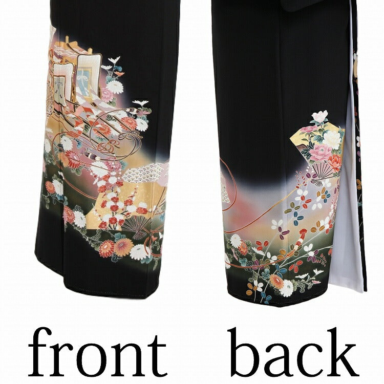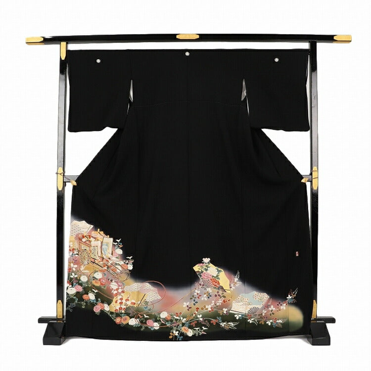 黒留袖 レンタル おすすめ Mサイズ 友禅桧扇花牛車 正絹 留袖 レンタル 留袖レンタル 黒留袖レンタル 【レンタル】 黒留袖 袷 母親 20代 30代 40代 50代 60代