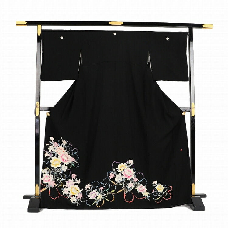 黒留袖 レンタル おすすめ Mサイズ 祝花変化 正絹 留袖 レンタル 留袖レンタル 黒留袖レンタル 【レンタル】 黒留袖 袷 母親 20代 30代 40代 50代 60代