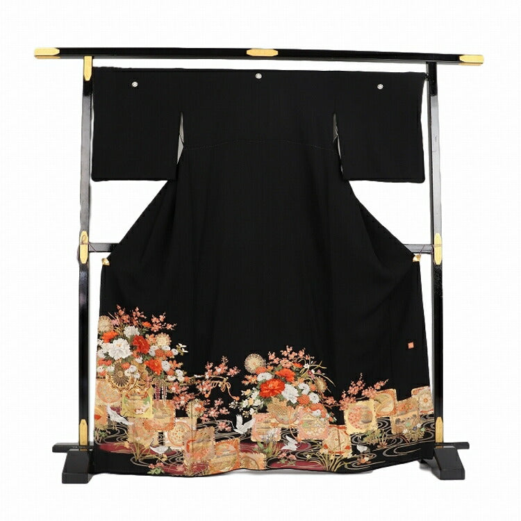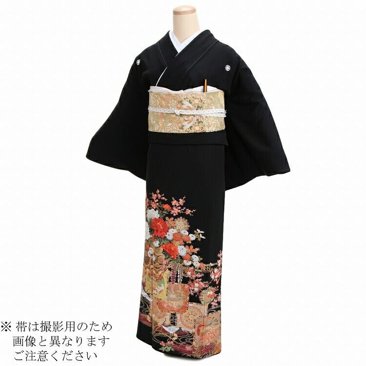 黒留袖 レンタル おすすめ Mサイズ 金箔花車桧天井 正絹 留袖 レンタル 留袖レンタル 黒留袖レンタル 【レンタル】 黒留袖 袷 母親 20代 30代 40代 50代 60代