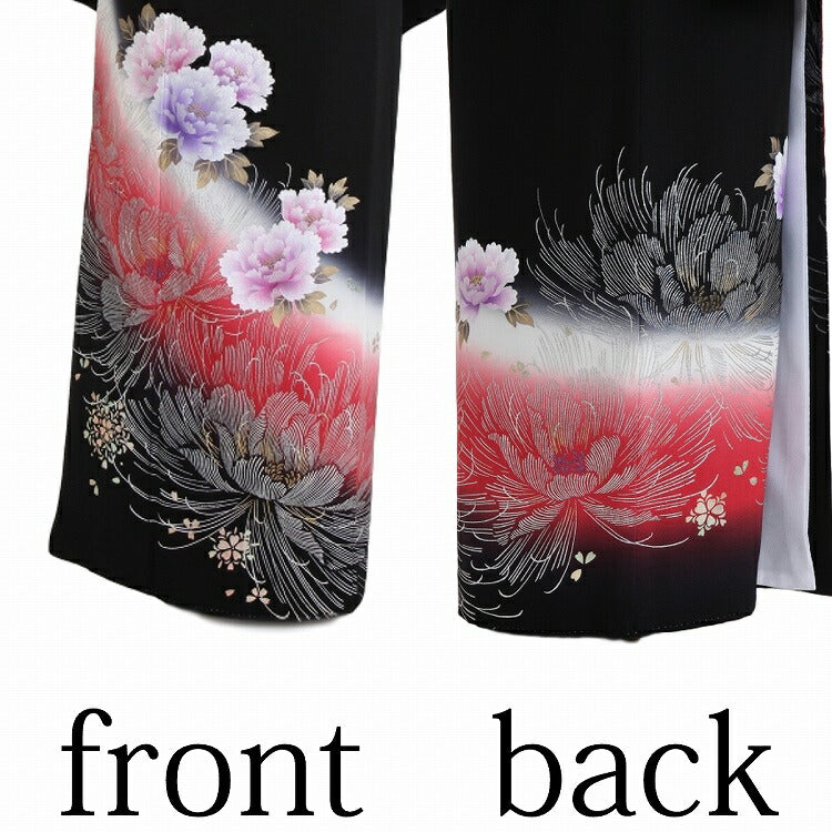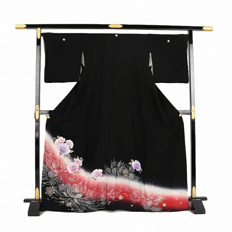 黒留袖 レンタル おすすめ Mサイズ 小豆ぼかし牡丹菊 正絹 留袖 レンタル 留袖レンタル 黒留袖レンタル 【レンタル】 黒留袖 袷 母親 20代 30代 40代 50代 60代