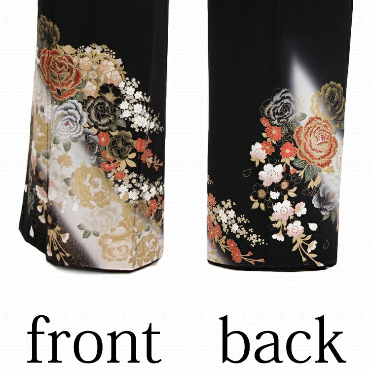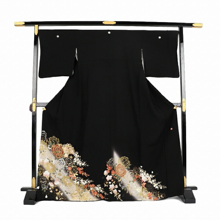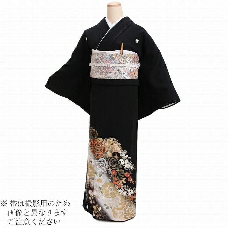 黒留袖 レンタル おすすめ Mサイズ 花集刺繍バラ 正絹 留袖 レンタル 留袖レンタル 黒留袖レンタル 【レンタル】 黒留袖 袷 母親 20代 30代 40代 50代 60代