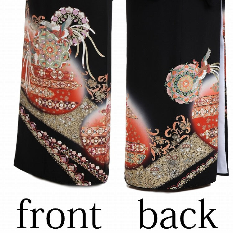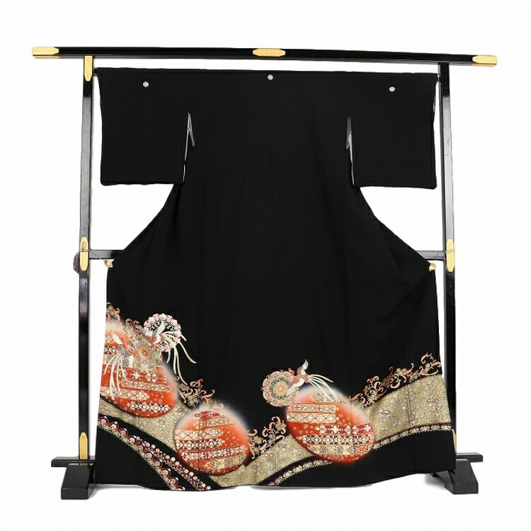 黒留袖 レンタル Mサイズ 朱箔更紗華紋金鶏 正絹 留袖 レンタル 留袖レンタル 黒留袖レンタル 【レンタル】 黒留袖 袷 母親 20代 30代 40代 50代 60代