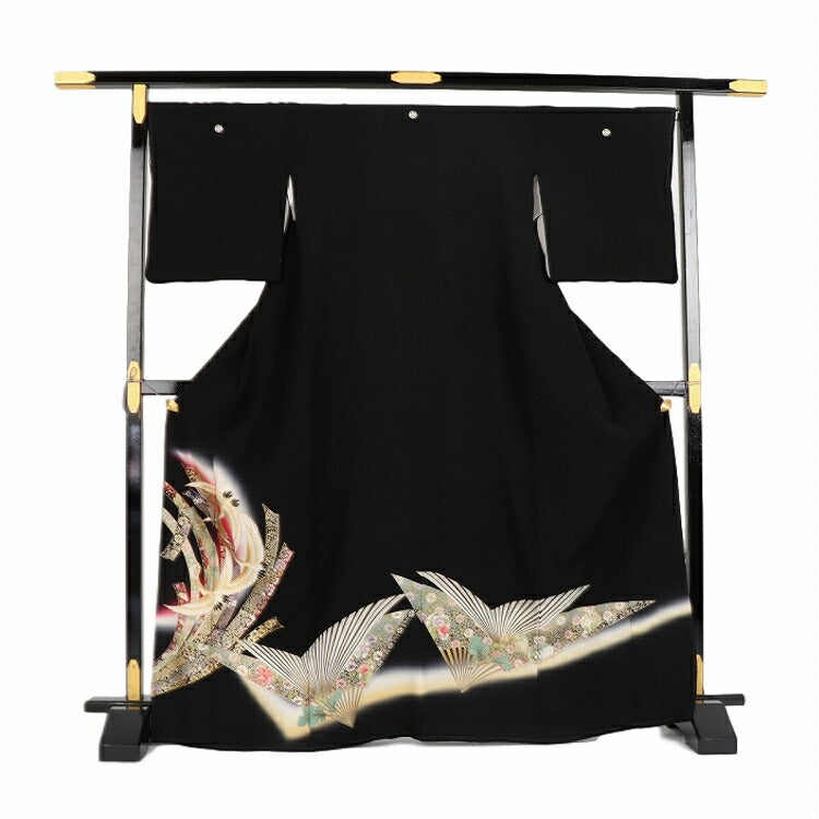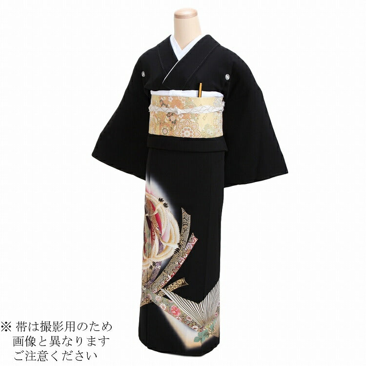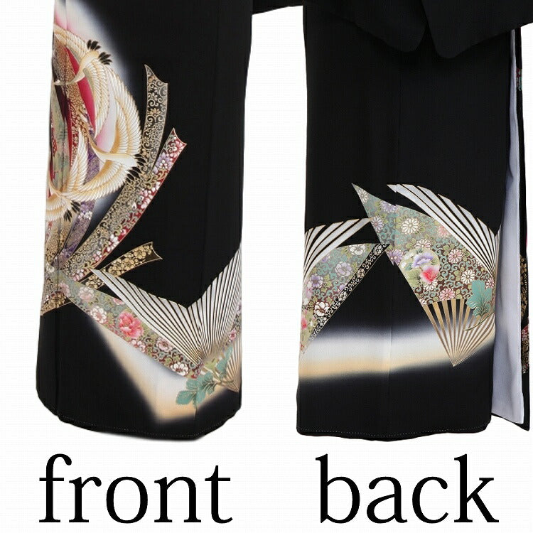 黒留袖 レンタル Mサイズ のし鶴扇面 正絹 留袖 レンタル 留袖レンタル 黒留袖レンタル 【レンタル】 黒留袖 袷 母親 20代 30代 40代 50代 60代