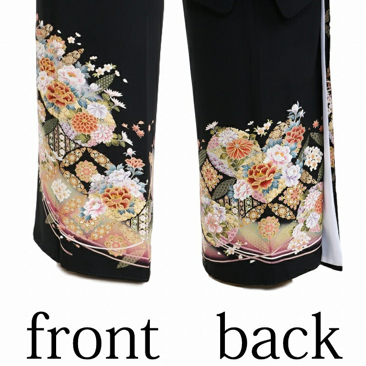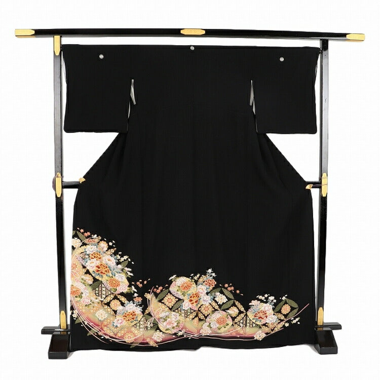黒留袖 レンタル Mサイズ 朱箔花牡丹七宝 正絹 留袖 レンタル 留袖レンタル 黒留袖レンタル 【レンタル】 黒留袖 袷 母親 20代 30代 40代 50代 60代