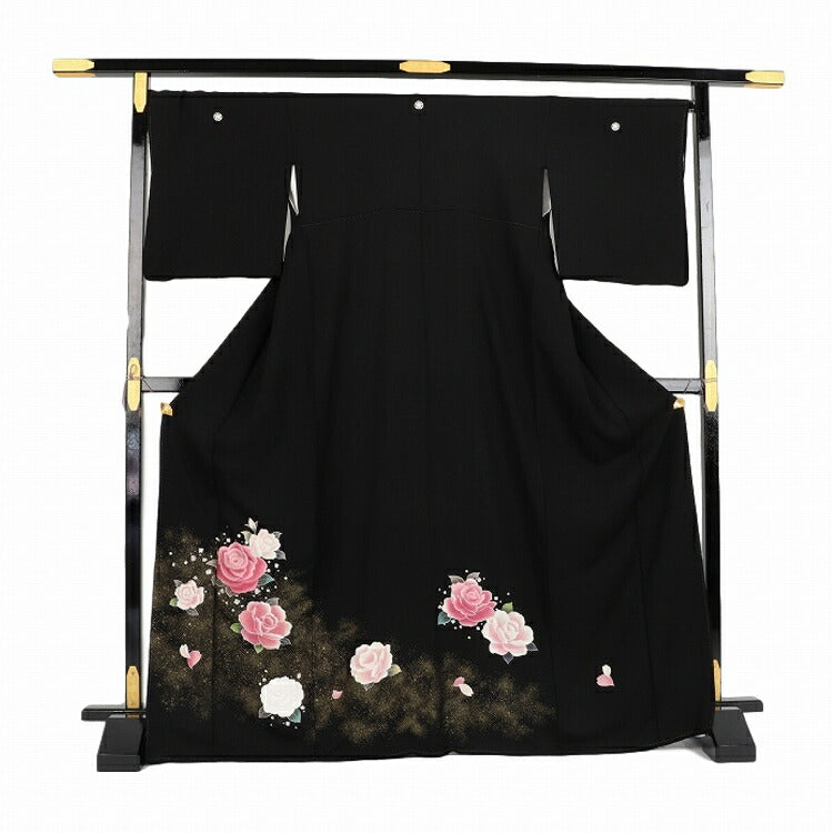 黒留袖 レンタル おすすめ Mサイズ 時白刺繍バラ 正絹 留袖 レンタル 留袖レンタル 黒留袖レンタル 【レンタル】 黒留袖 袷 母親 20代 30代 40代 50代 60代