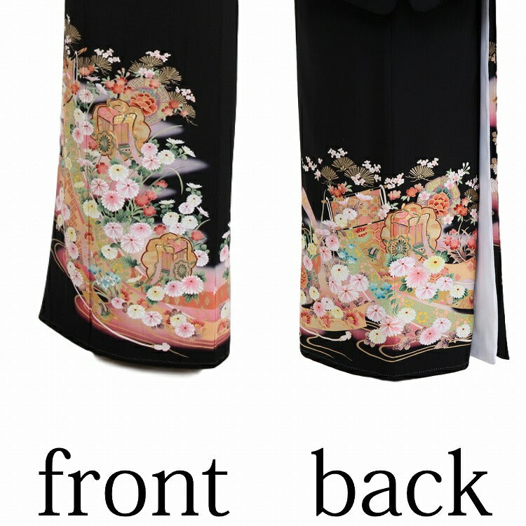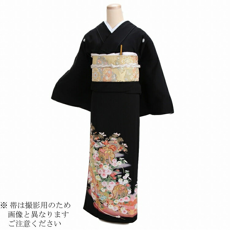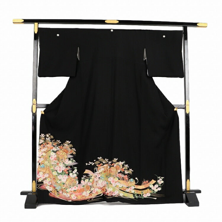 黒留袖 レンタル Mサイズ ワイン几帳御所車 正絹 留袖 レンタル 留袖レンタル 黒留袖レンタル 【レンタル】 黒留袖 袷 母親 20代 30代 40代 50代 60代