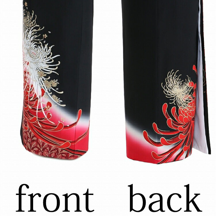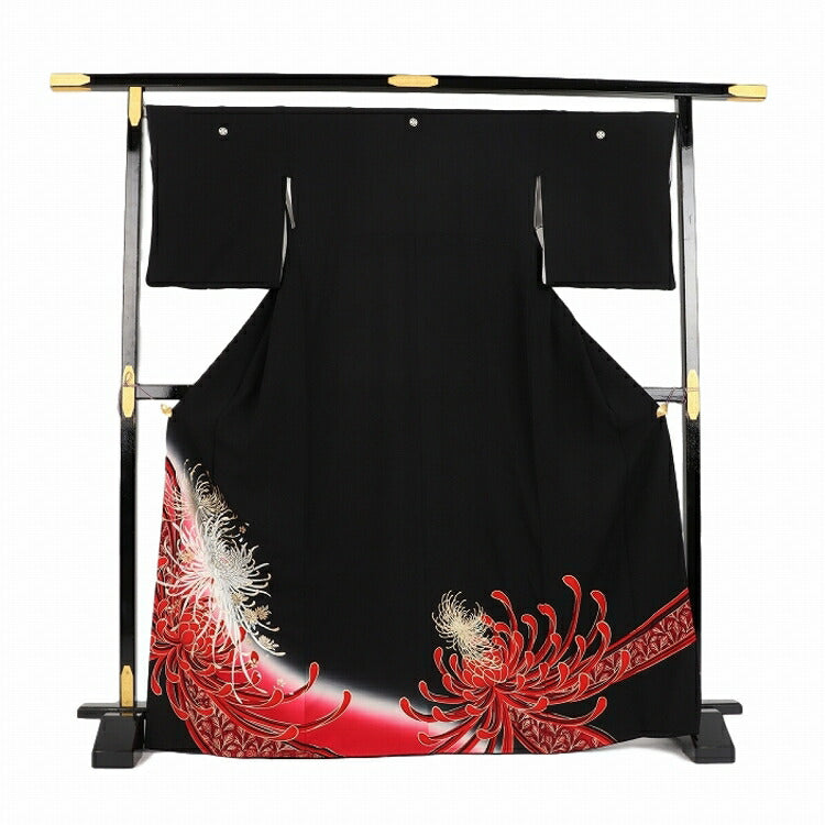 黒留袖 レンタル Mサイズ 赤乱菊 正絹 留袖 レンタル 留袖レンタル 黒留袖レンタル 【レンタル】 黒留袖 袷 母親 20代 30代 40代 50代 60代