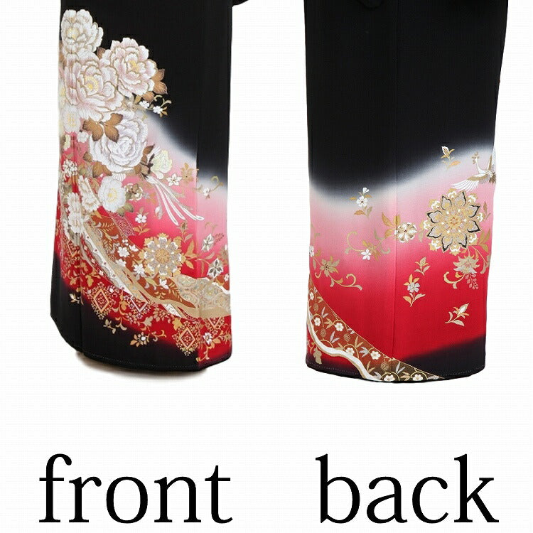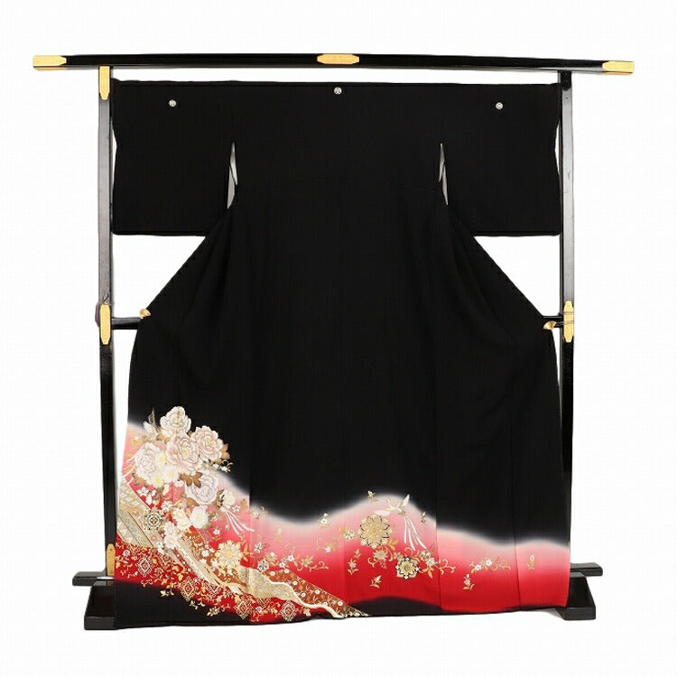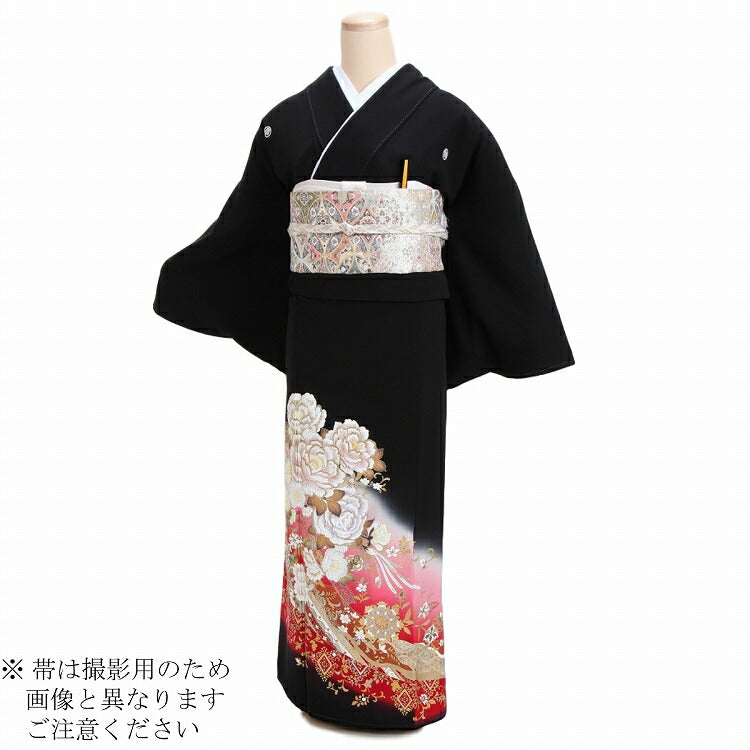 黒留袖 レンタル Mサイズ 赤ぼかし牡丹金鶏のし 正絹 留袖 レンタル 留袖レンタル 黒留袖レンタル 【レンタル】 黒留袖 袷 母親 20代 30代 40代 50代 60代