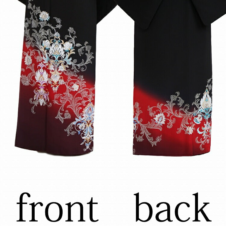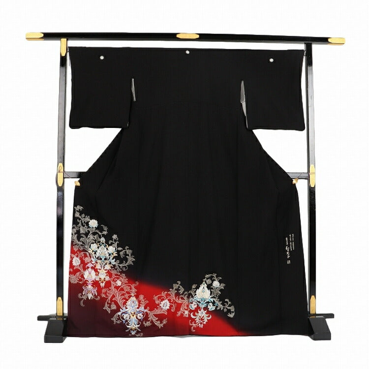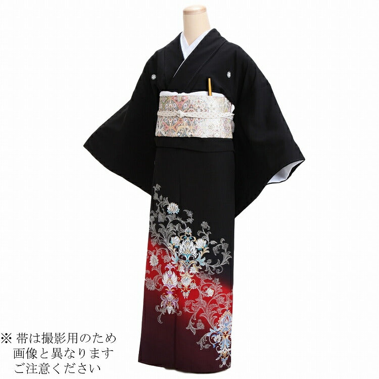 黒留袖 レンタル Mサイズ 赤ぼかし唐草 正絹 留袖 レンタル 留袖レンタル 黒留袖レンタル 【レンタル】 黒留袖 袷 母親 20代 30代 40代 50代 60代