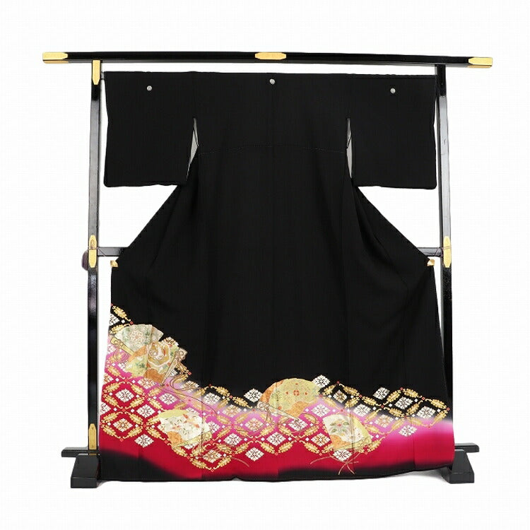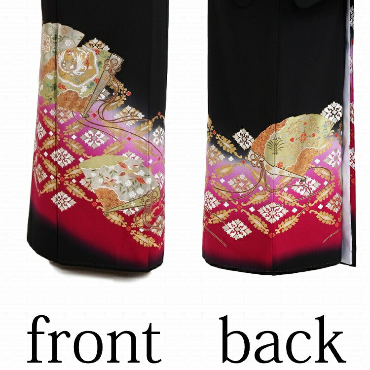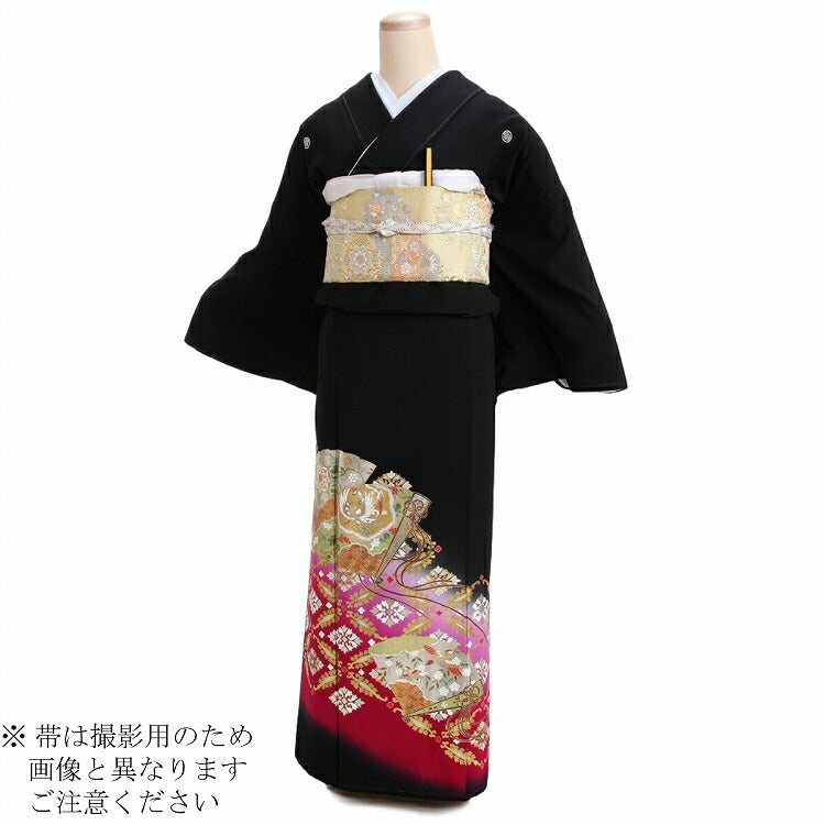 黒留袖 レンタル Mサイズ ワインぼかし扇菱 正絹 留袖 レンタル 留袖レンタル 黒留袖レンタル 【レンタル】 黒留袖 袷 母親 20代 30代 40代 50代 60代