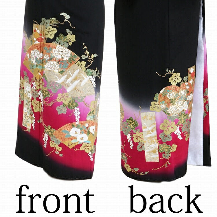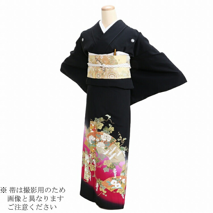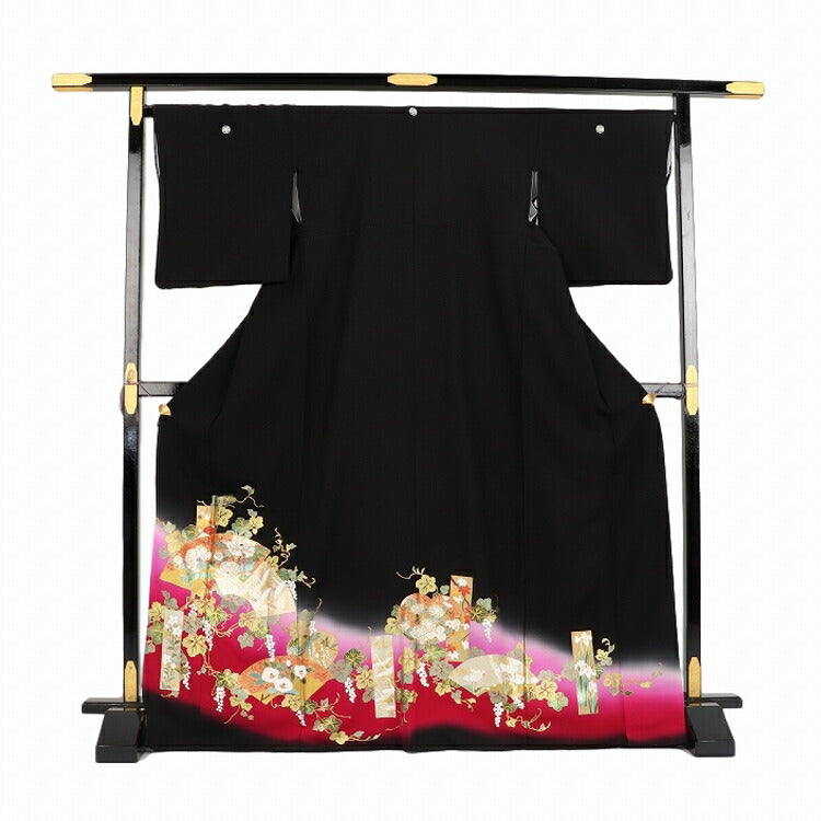 黒留袖 レンタル Mサイズ ワインぼかし唐草扇面 正絹 留袖 レンタル 留袖レンタル 黒留袖レンタル 【レンタル】 黒留袖 袷 母親 20代 30代 40代 50代 60代