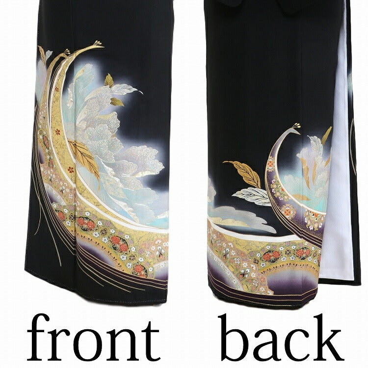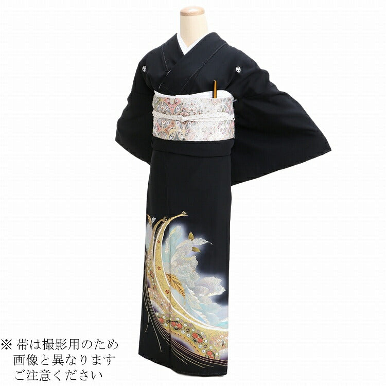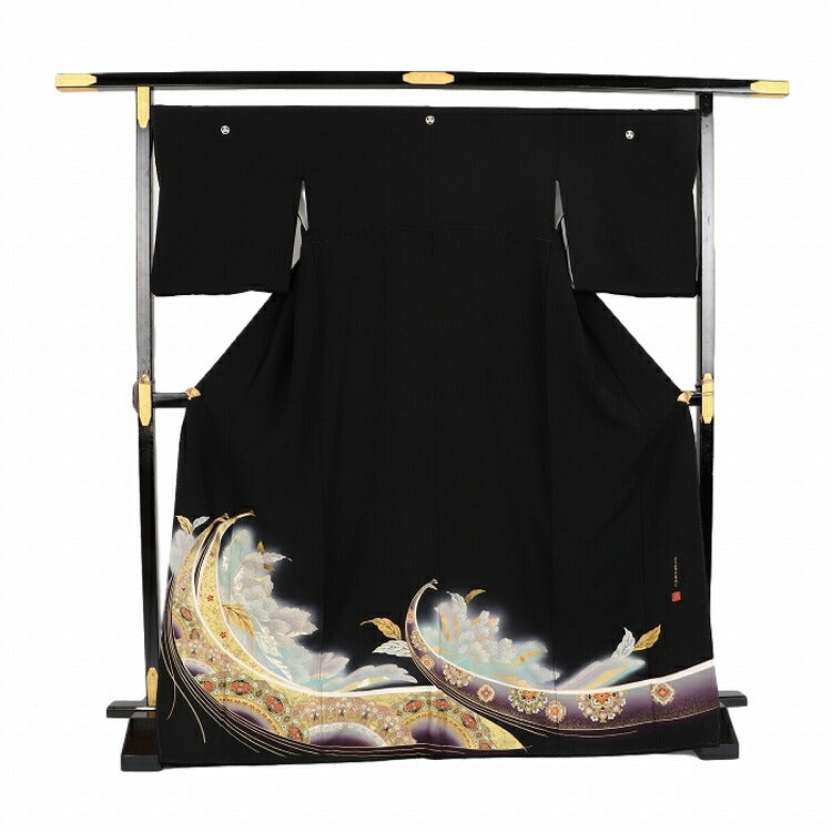 黒留袖 レンタル Mサイズ 紫ぼかし波頭銀牡丹 正絹 留袖 レンタル 留袖レンタル 黒留袖レンタル 【レンタル】 黒留袖 袷 母親 20代 30代 40代 50代 60代