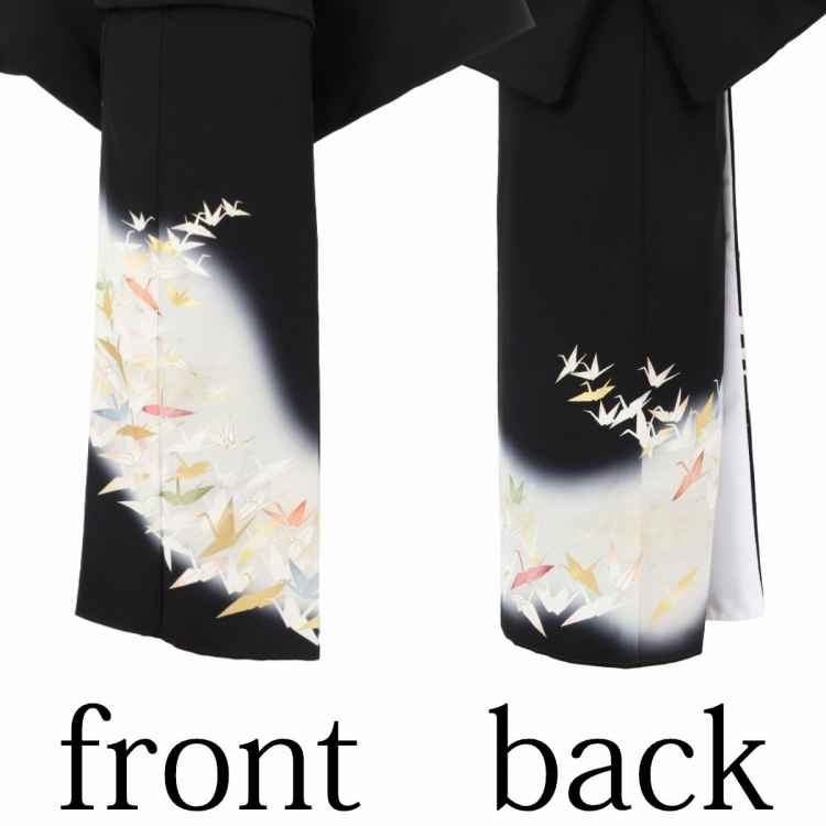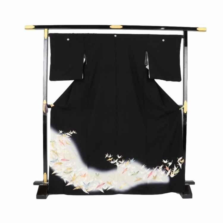 黒留袖 レンタル Mサイズ 白ぼかし折り鶴 正絹 留袖 レンタル 留袖レンタル 黒留袖レンタル 【レンタル】 黒留袖 袷 母親 20代 30代 40代 50代 60代