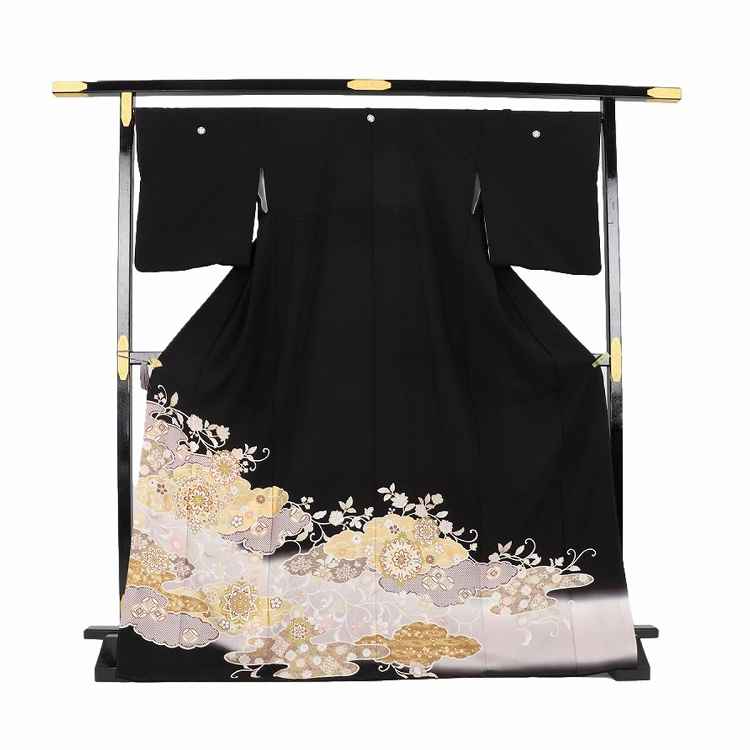 黒留袖 レンタル Mサイズ 藤雲取り華文唐草 正絹 留袖 レンタル 留袖レンタル 黒留袖レンタル 【レンタル】 黒留袖 袷 母親 20代 30代 40代 50代 60代
