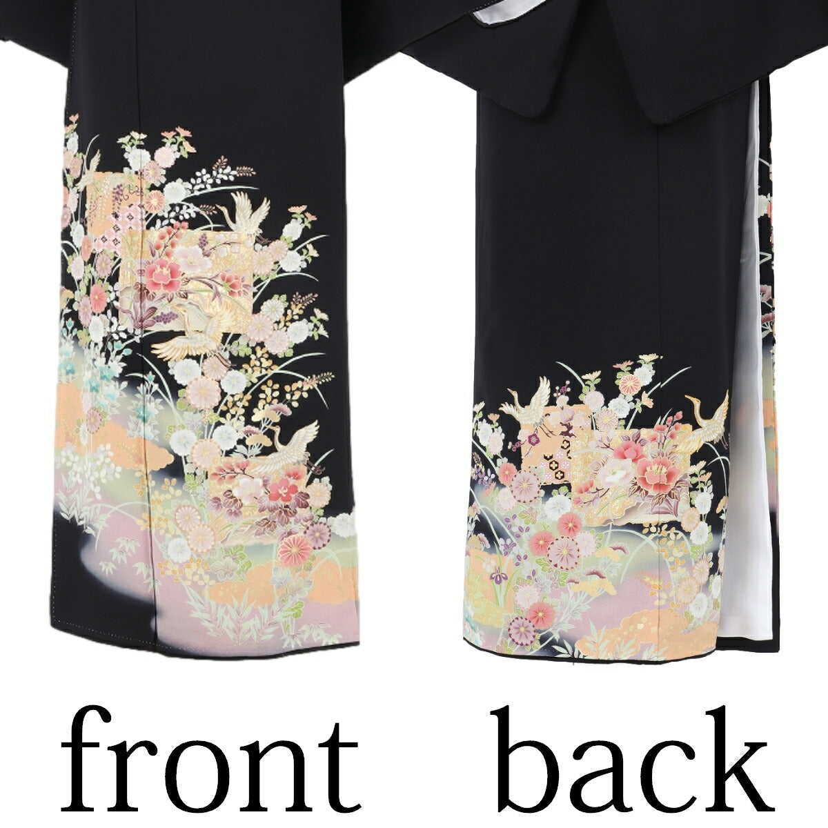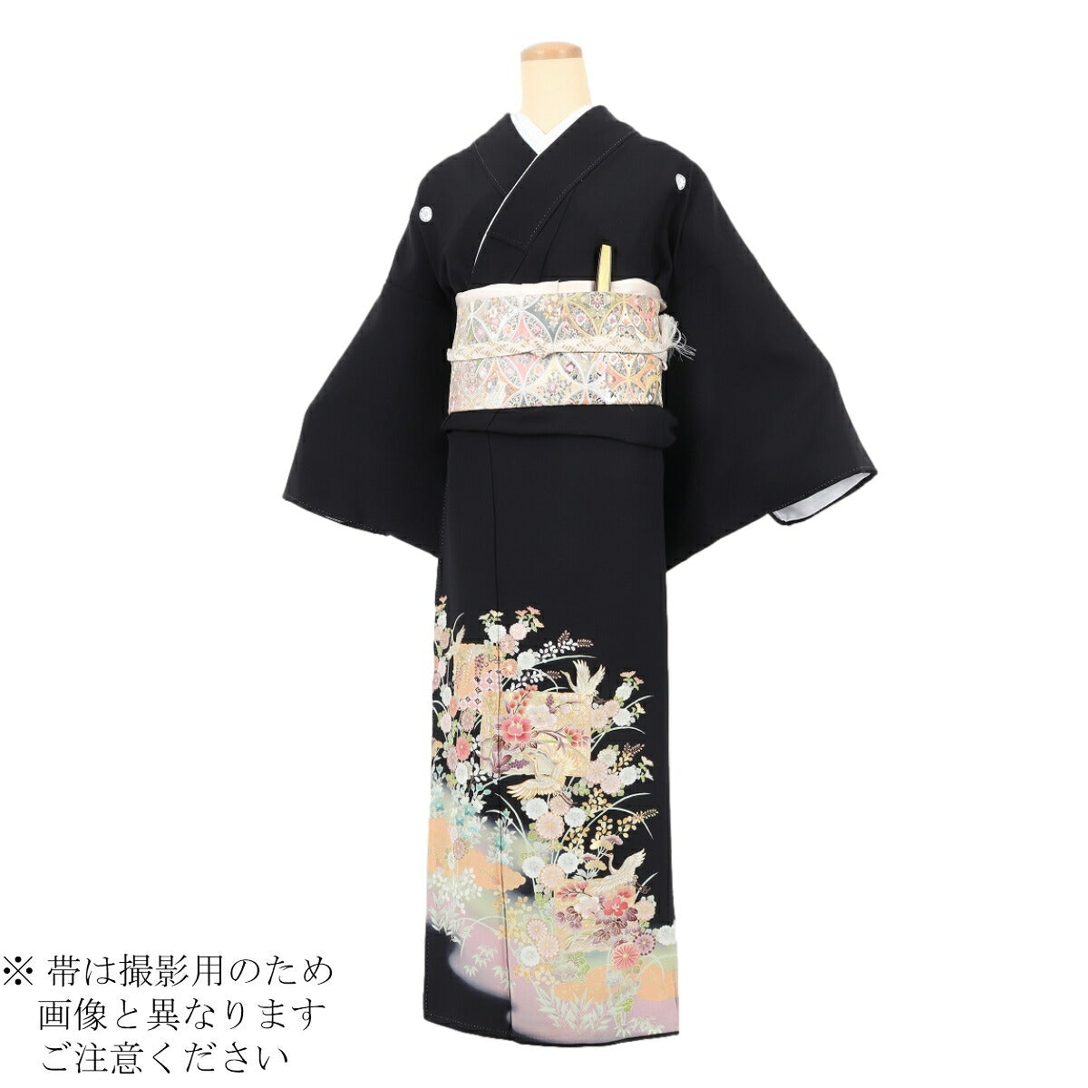 黒留袖 レンタル トールサイズ LAサイズ 鶴に秋草文 正絹 留袖 レンタル 留袖レンタル 黒留袖レンタル 【レンタル】 黒留袖 袷 母親 20代 30代 40代 50代 60代