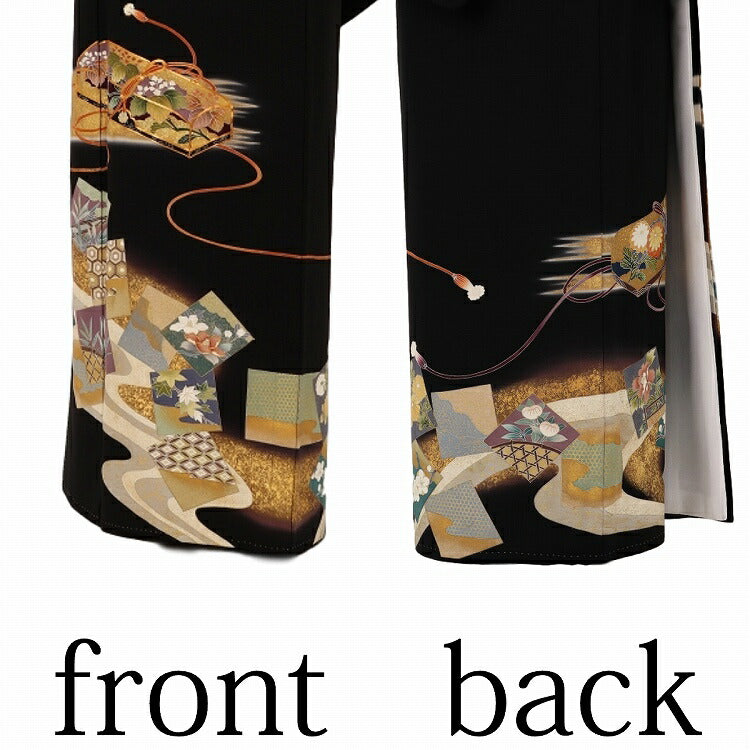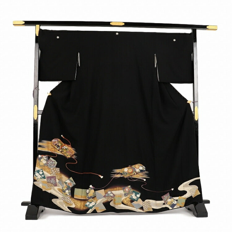 黒留袖 レンタル 大きいサイズ 広幅 おすすめ Lサイズ 箔流水色紙文箱 正絹 留袖 レンタル 留袖レンタル 黒留袖レンタル 【レンタル】 黒留袖 レンタルLL 大きめの 20代 30代 40代 50代 60代