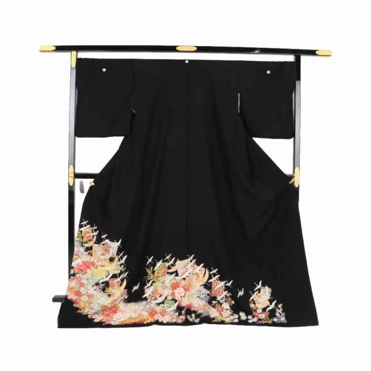 黒留袖 レンタル 大きいサイズ 広幅 Lサイズ ワイン飛鶴四季草花 正絹 留袖 レンタル 留袖レンタル 黒留袖レンタル 【レンタル】 黒留袖 レンタルLL 大きめの 20代 30代 40代 50代 60代