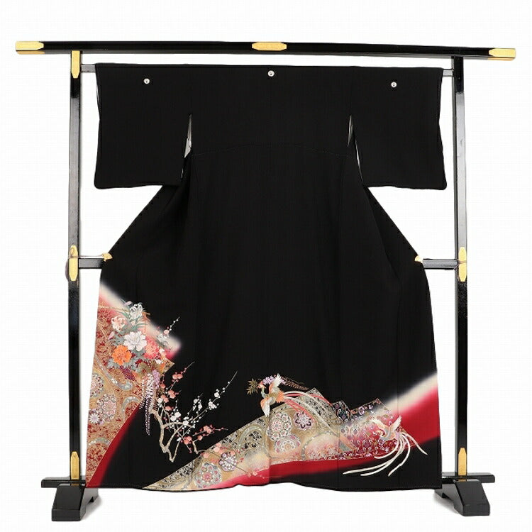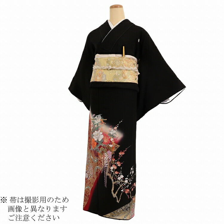 黒留袖 レンタル 小さいサイズ Sサイズ レンガ裂取祝花 正絹 留袖 レンタル 留袖レンタル 黒留袖レンタル 【レンタル】 黒留袖 袷 母親 20代 30代 40代 50代 60代