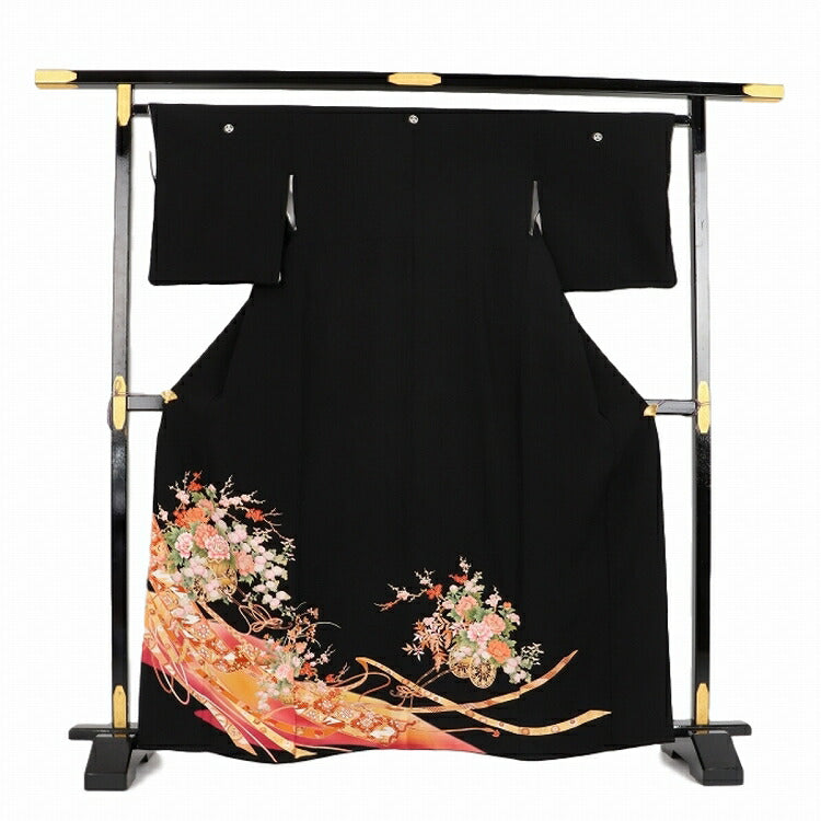 黒留袖 レンタル 小さいサイズ Sサイズ 時のし花篭 正絹 留袖 レンタル 留袖レンタル 黒留袖レンタル 【レンタル】 黒留袖 袷 母親 20代 30代 40代 50代 60代